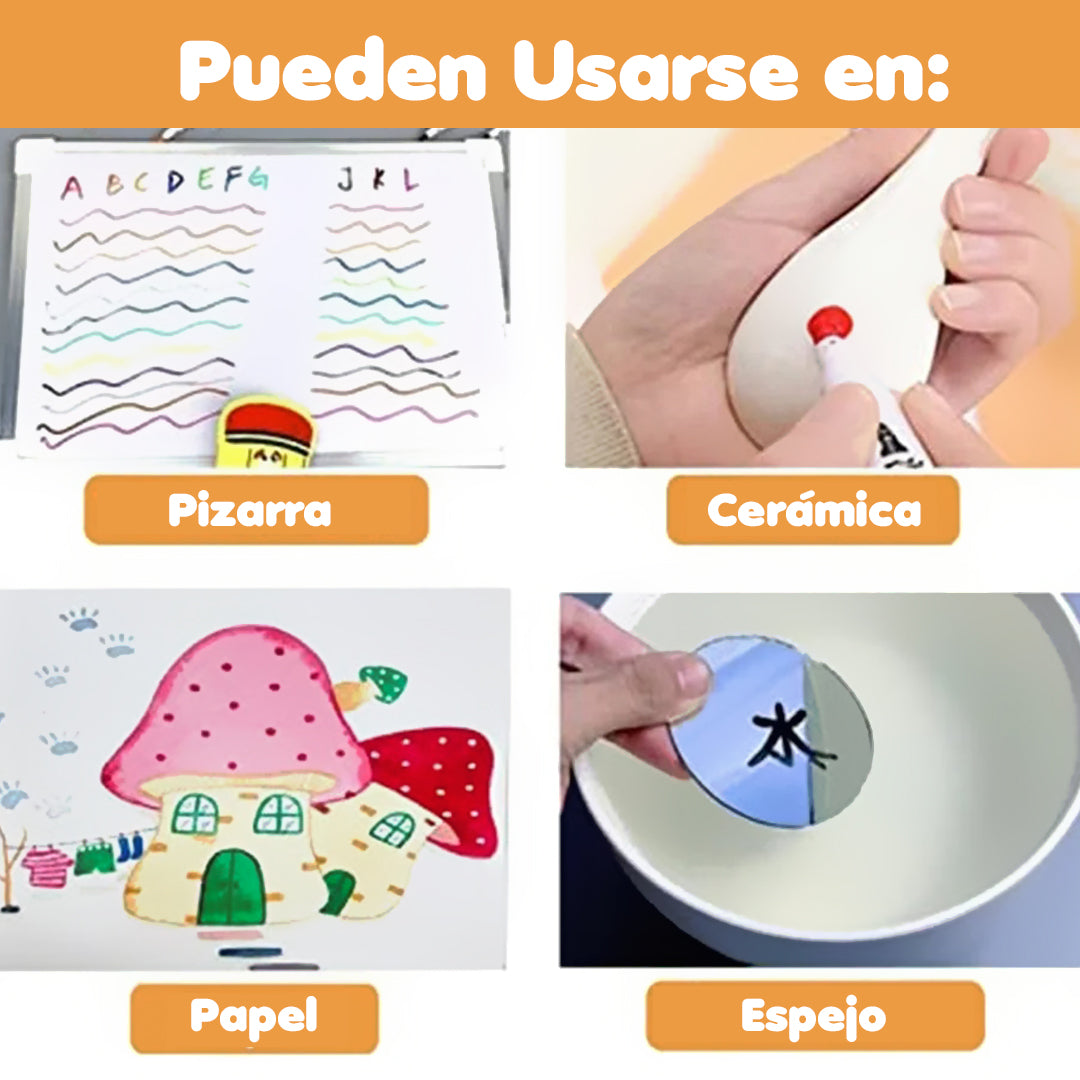 ✔️ Marcadores mágicos que permiten crear dibujos flotantes sobre el agua.