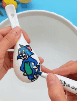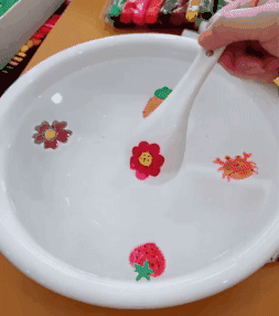 Dibuja en la cuchara de cerámica, sumérgela lento en el agua y listo. ¡Tu dibujo flotará!